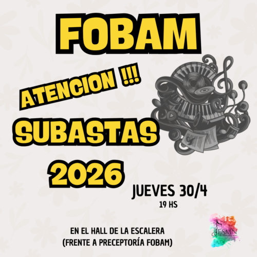 La subasta se realizara el Jueves 30/4 a las 19hs en el hall de la escalera (frente a preceptoría fobam). Traer DNI Les dejamos el link para que veas que instrumentos están Vacantes - Feliz día Profes!!!